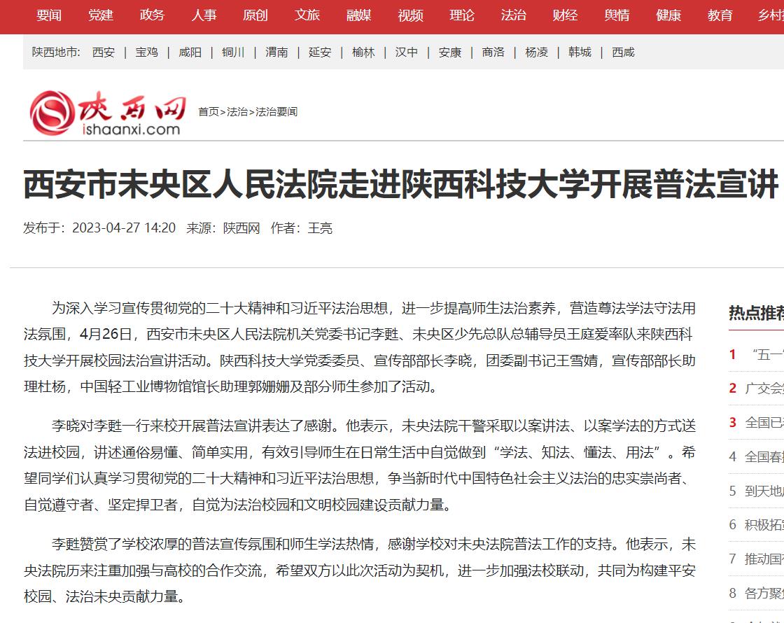陜西網(wǎng):西安市未央?yún)^(qū)人民法院走進(jìn)陜西科技大學(xué)開(kāi)展普法宣講