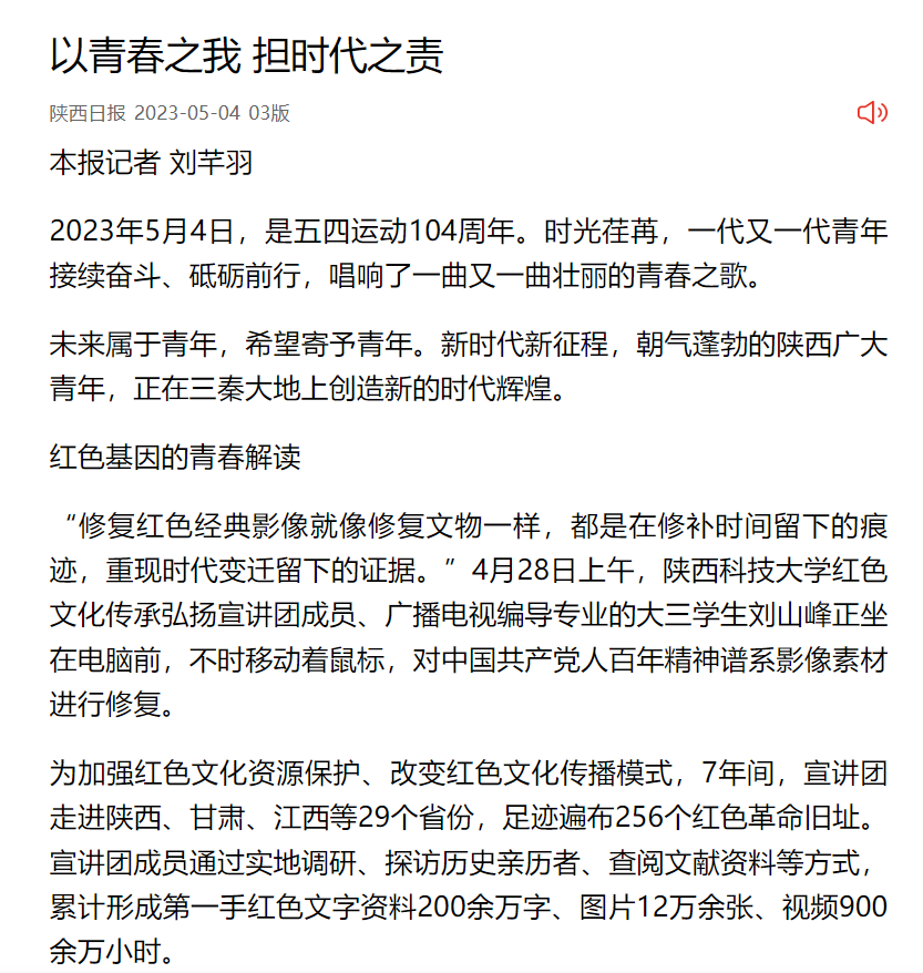 群眾新聞:以青春之我 擔(dān)時代之責(zé)