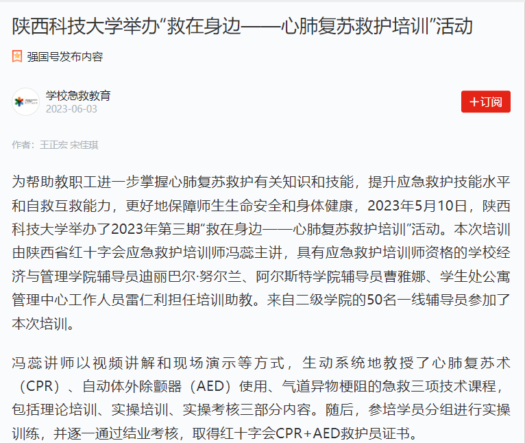 學(xué)習(xí)強(qiáng)國:陜西科技大學(xué)舉辦“救在身邊——心肺復(fù)蘇救護(hù)培訓(xùn)”活動