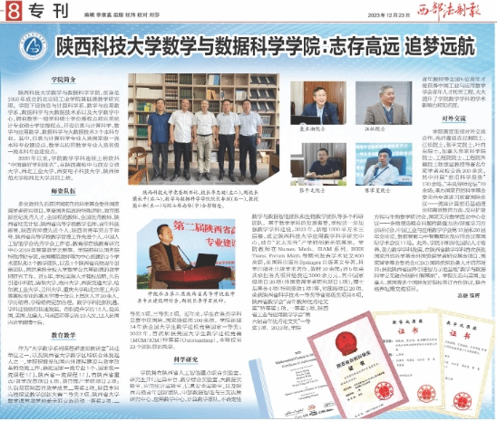 《西部法制報》:陜西科技大學數(shù)學與數(shù)據(jù)科學學院:志存高遠 追夢遠航