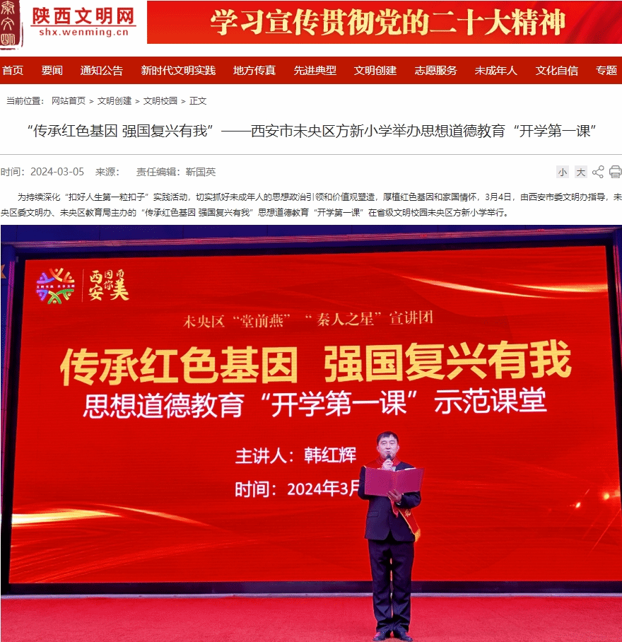 《西安日報》:2024思想道德教育“開學(xué)第一課”活動在全市各級文明校園持續(xù)開展