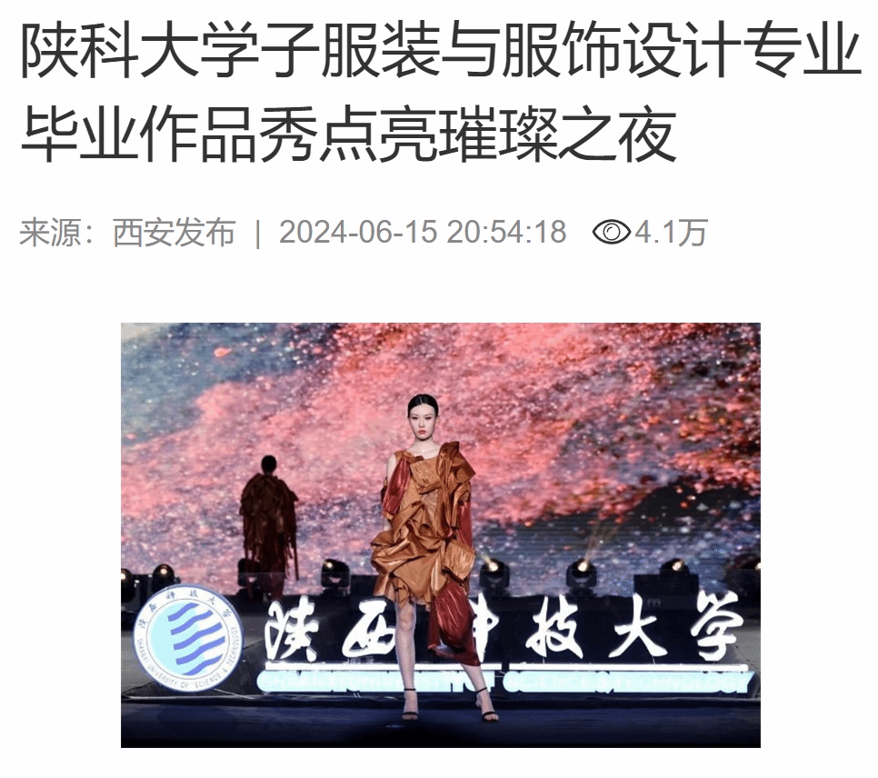 群眾新聞網(wǎng):陜科大學子服裝與服飾設(shè)計專業(yè)畢業(yè)作品秀點亮璀璨之夜
