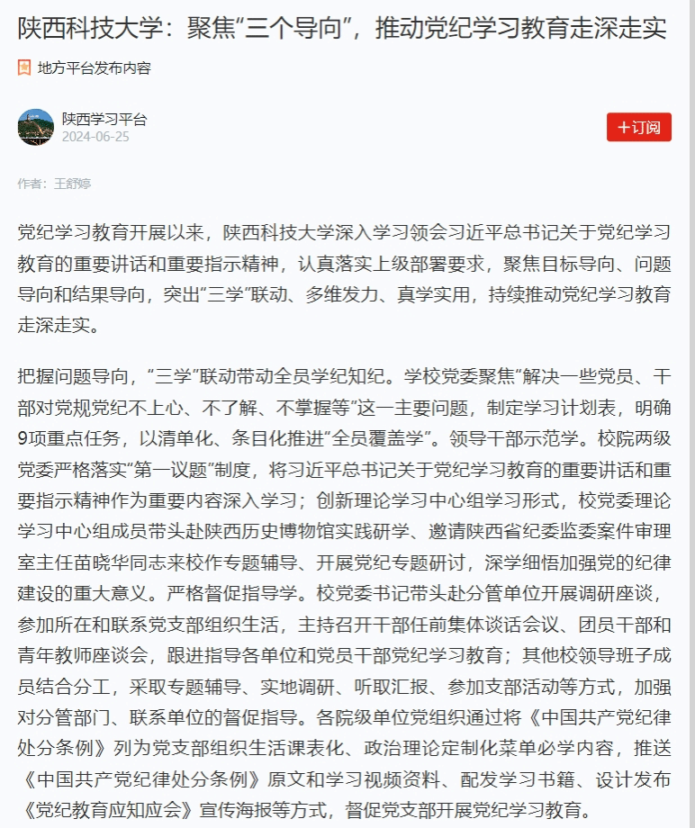 學(xué)習(xí)強(qiáng)國:陜西科技大學(xué):聚焦“三個(gè)導(dǎo)向”,推動黨紀(jì)學(xué)習(xí)教育走深走實(shí)