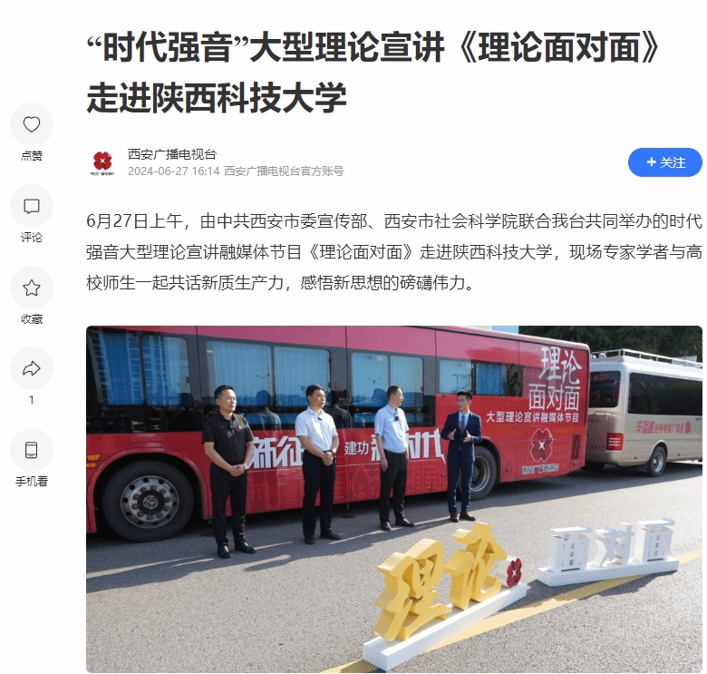 近日,騰訊網(wǎng)、原點新聞、西安廣播電視臺官方微博報道《理論面對面》走進我校。
