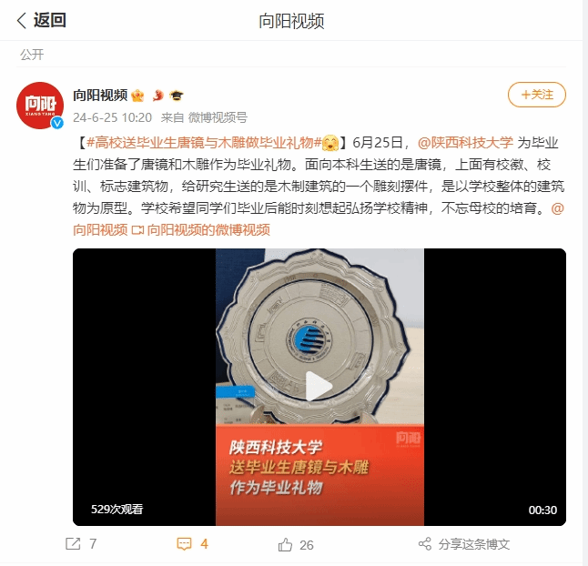 向陽(yáng)視頻:高校送畢業(yè)生唐鏡與木雕做畢業(yè)禮物