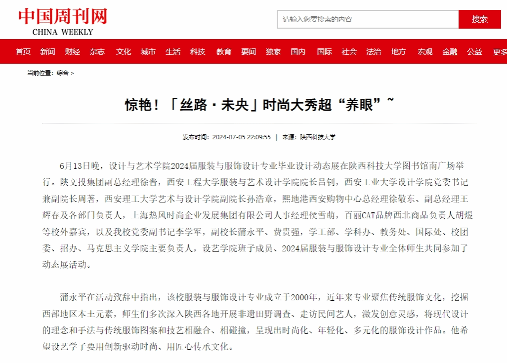近日,中國(guó)周刊網(wǎng)報(bào)道我?!附z路·未央」時(shí)尚大秀超“養(yǎng)眼”。