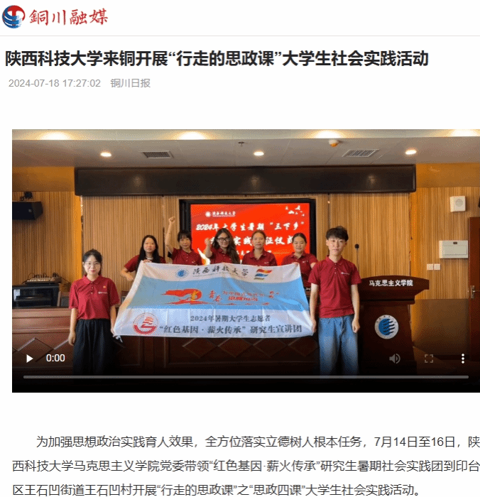 近日,銅川日報報道我校赴銅開展“行走的思政課”大學(xué)生社會實踐活動。