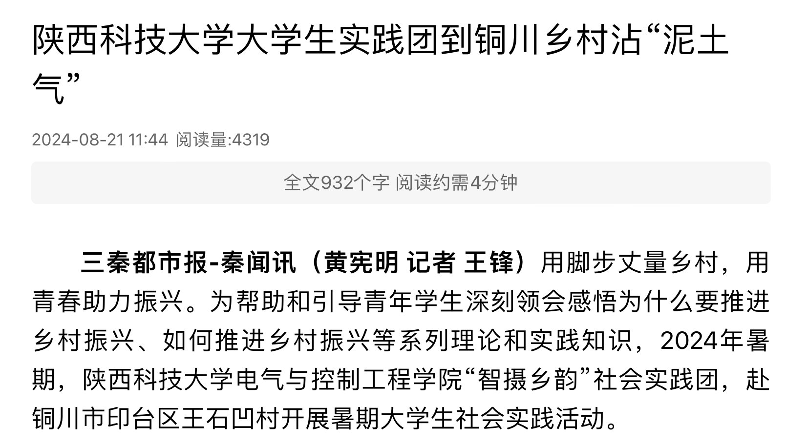 《三秦都市報(bào)》:陜西科技大學(xué)大學(xué)生實(shí)踐團(tuán)到銅川鄉(xiāng)村沾“泥土氣”