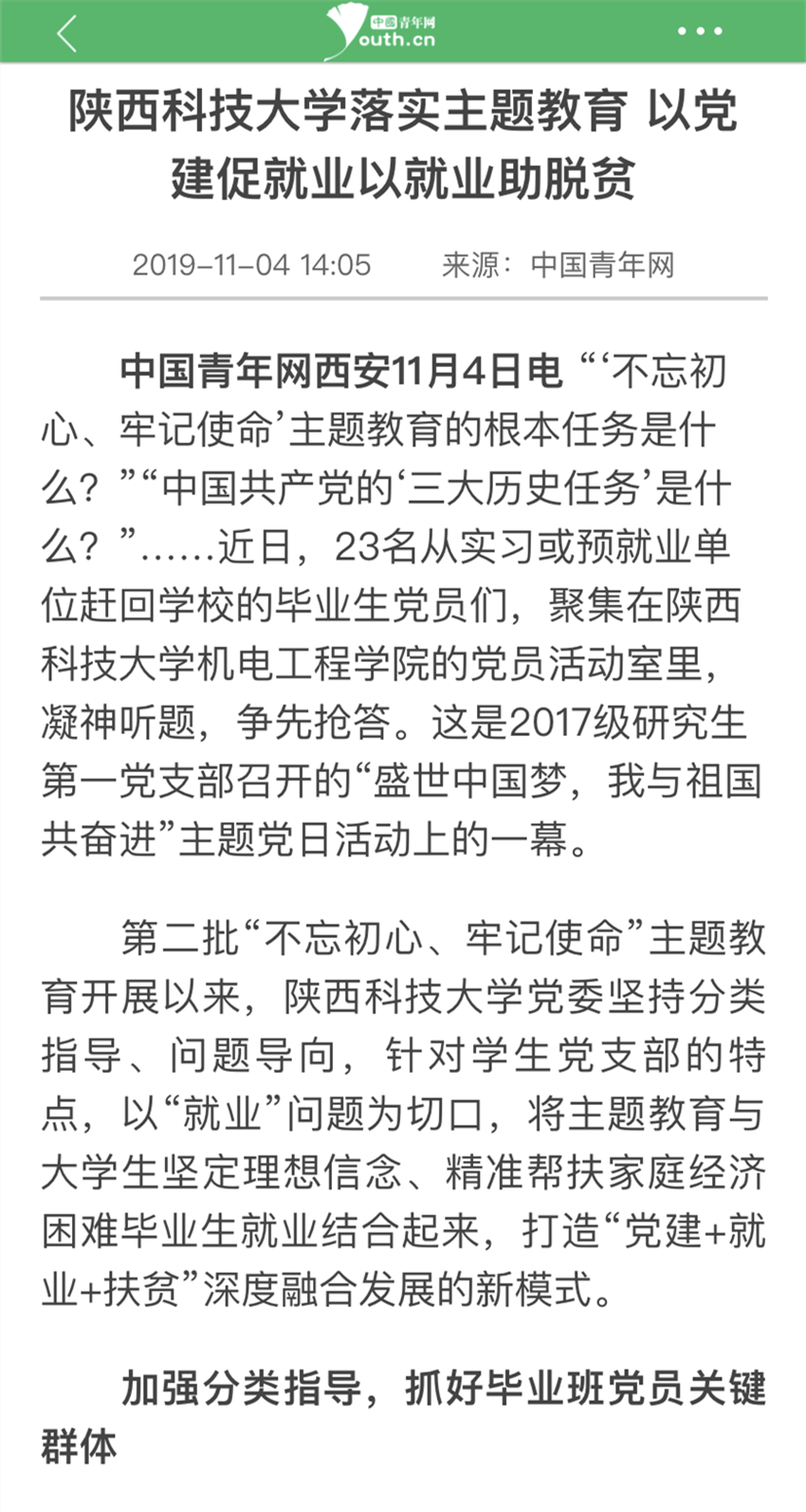 中國青年網(wǎng):陜西科技大學(xué)落實主題教育 以黨建促就業(yè)以就業(yè)助脫貧