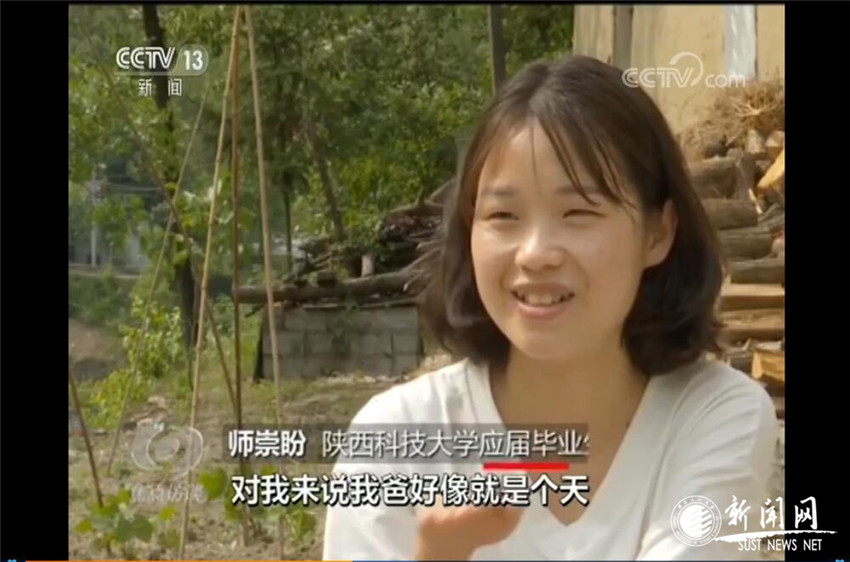 “這個愛笑的女生叫師崇盼,是陜西科技大學(xué)經(jīng)濟與管理學(xué)院市場營銷專業(yè)的應(yīng)屆畢業(yè)生。……師崇盼是一名來自農(nóng)村的貧困生……輔導(dǎo)員了解到師崇盼的具體情況后,就反映到了學(xué)校學(xué)工部的學(xué)生資助管理中心。中心工作人員經(jīng)過核實確認,把師崇盼定為了“建檔立卡”的貧困生……”這是中央電視臺《焦點訪談》欄目今年專訪陜科大幫扶家庭經(jīng)濟困難學(xué)生就業(yè)工作播出的一段采訪內(nèi)容。