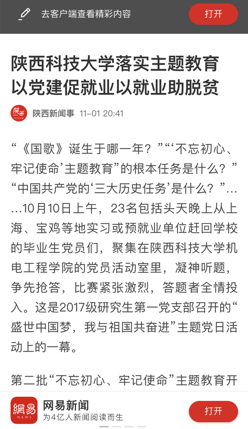 網(wǎng)易新聞:陜西科技大學(xué)落實主題教育 以黨建促就業(yè)以就業(yè)助脫貧