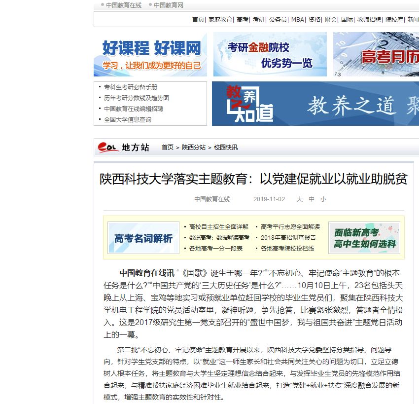 中國教育網(wǎng):陜西科技大學(xué)落實主題教育 以黨建促就業(yè)以就業(yè)助脫貧