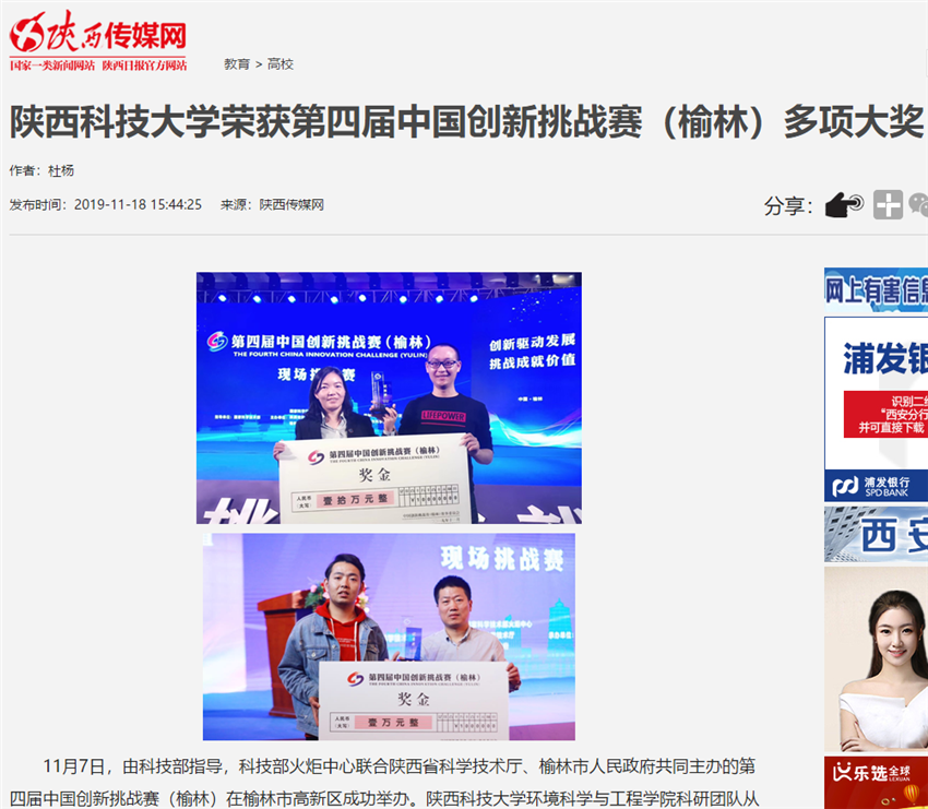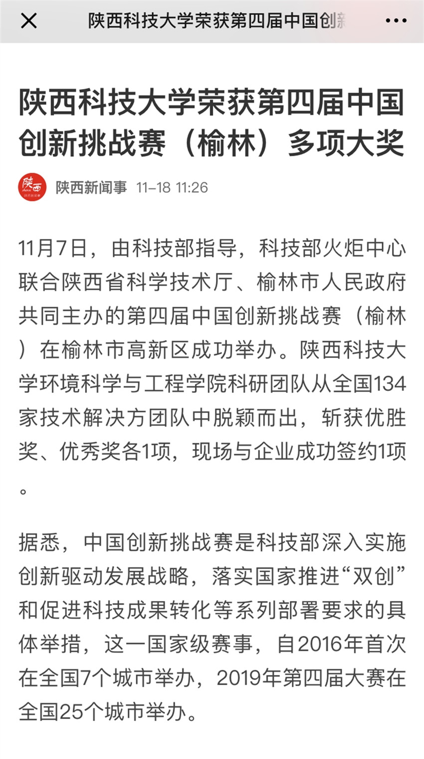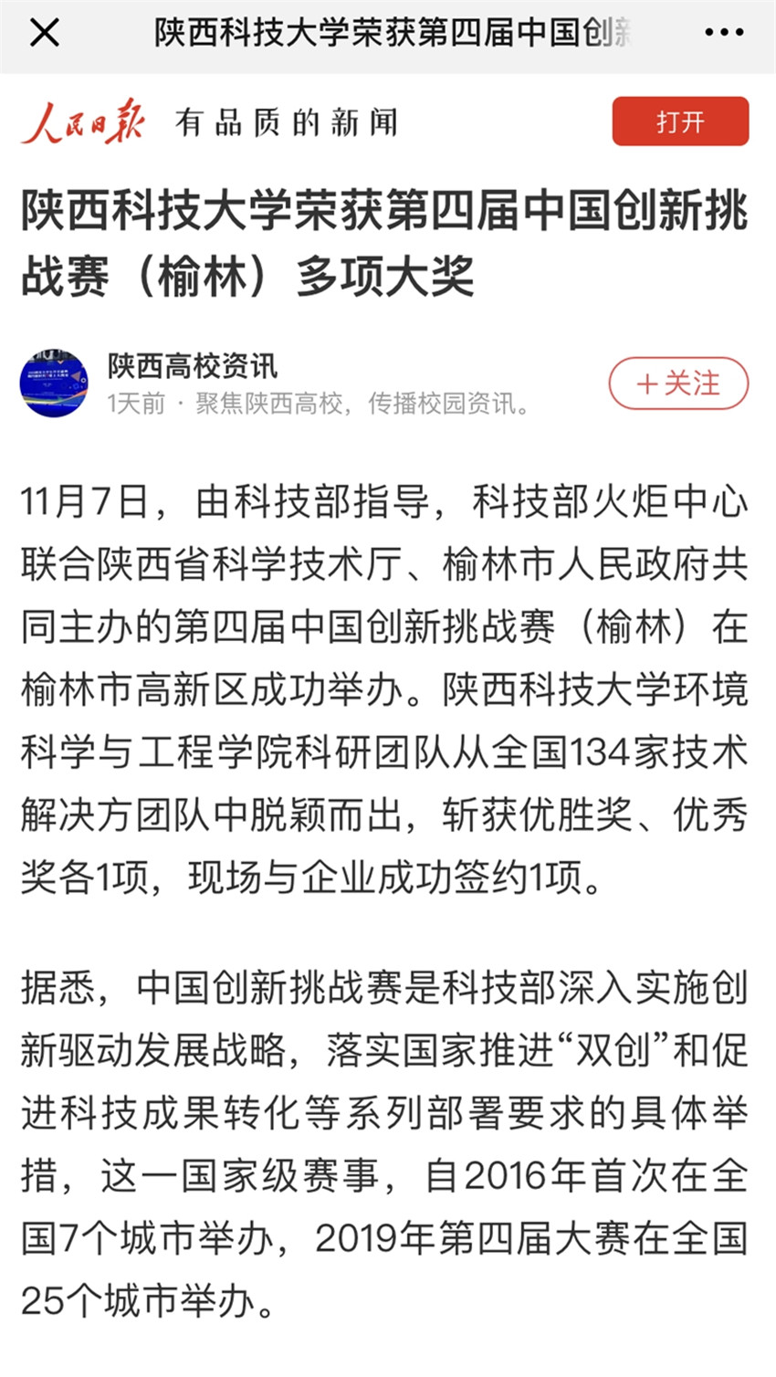 人民日?qǐng)?bào)APP:陜西科技大學(xué)榮獲第四屆中國(guó)創(chuàng)新挑戰(zhàn)賽(榆林)多項(xiàng)大獎(jiǎng)