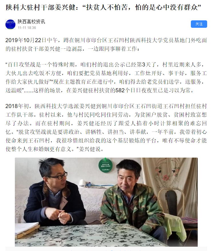 三秦網(wǎng):陜科大駐村干部姜興?。骸胺鲐毴瞬慌驴啵碌氖切闹袥]有群眾”
