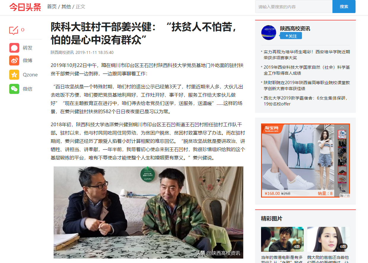 今日頭條:陜科大駐村干部姜興?。骸胺鲐毴瞬慌驴啵碌氖切闹袥]有群眾”