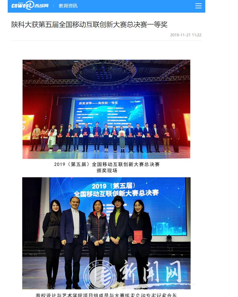 西部網(wǎng)報道:陜科大獲第五屆全國移動互聯(lián)創(chuàng)新大賽總決賽一等獎