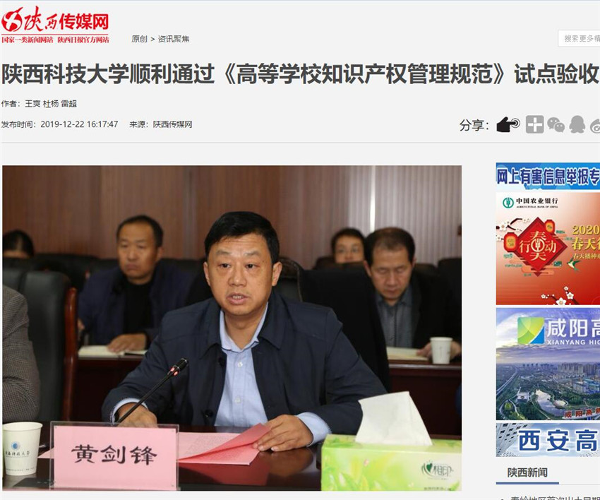 陜西傳媒網(wǎng):陜西科技大學(xué)順利通過《高等學(xué)校知識產(chǎn)權(quán)管理規(guī)范》試點驗收