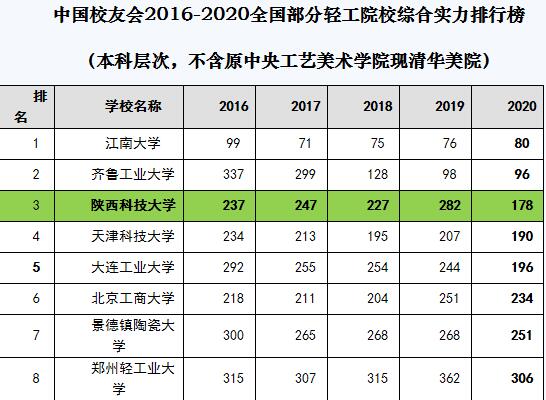 12月27日,艾瑞深中國校友會網(wǎng)(cuaa.net)正式公布《2020中國大學(xué)評價研究報告—高考志愿填報指南》,最新發(fā)布校友會2020中國大學(xué)排名1200強(qiáng)榜單。2020年校友會排名依據(jù)國家“雙一流”建設(shè)最新要求,對中國大學(xué)評價指標(biāo)體系做了改進(jìn)與調(diào)整,我校在部分關(guān)鍵性指標(biāo)方面取得突破性發(fā)展:居全國第178位,較2019年躍升104位,位列陜西省高校第10位,全國輕工特色院校第3位,整體實力躋身中國同類高校第一方陣。