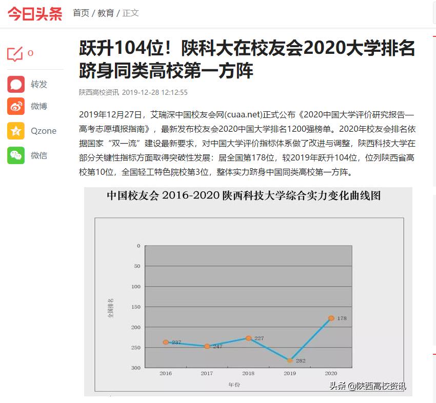 今日頭條APP:躍升104位!陜科大在校友會2020大學(xué)排名躋身同類高校第一方陣