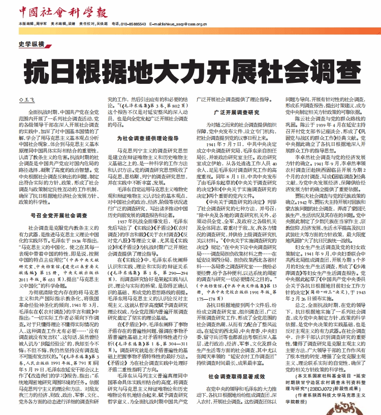 4月23日,《中國社會科學報》刊發(fā)我校馬克思主義學院王飛教授理論文章《抗日根據(jù)地大力開展社會調(diào)查》。