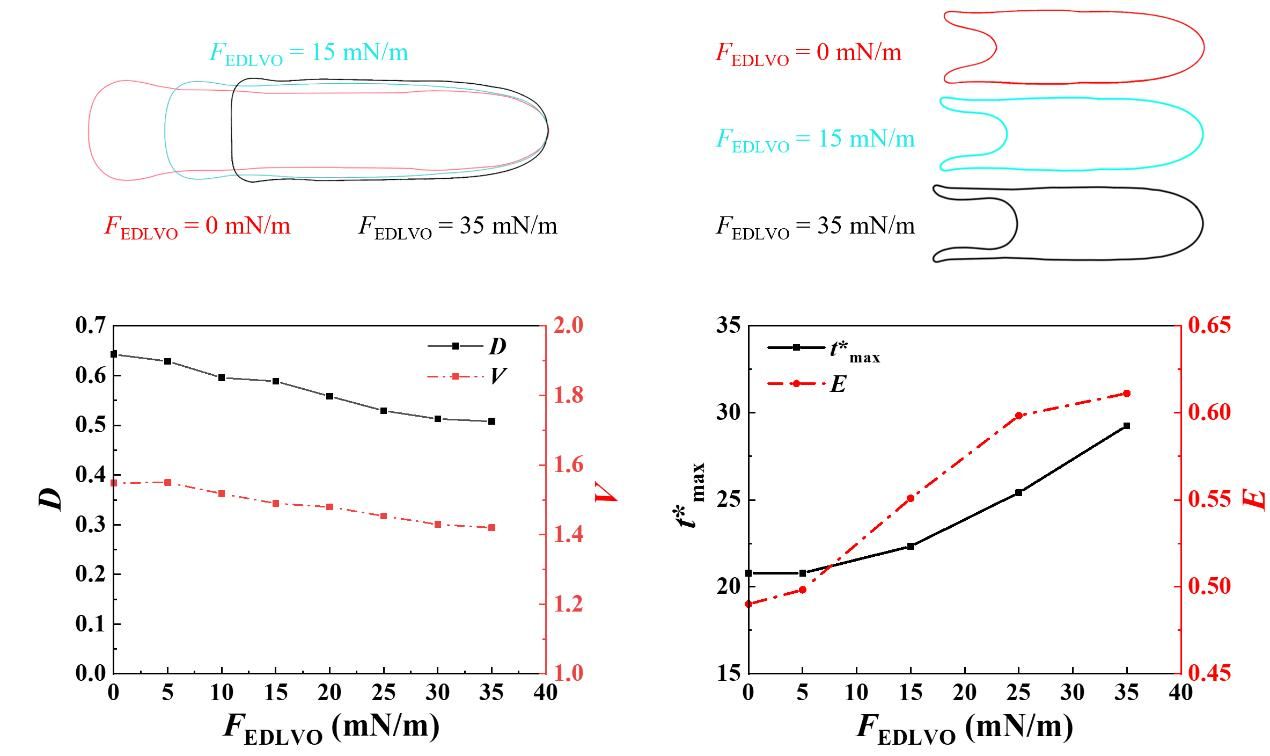 揭示了在油-壁相互作用力影響下油滴脫附與捕獲過程中典型動力學(xué)行為的轉(zhuǎn)變機制,發(fā)現(xiàn)了相互作用力對液滴脫附動力學(xué)的影響并非只有單純的抑制作用,通過機理分析解釋了引起動力學(xué)行為差異的原因。