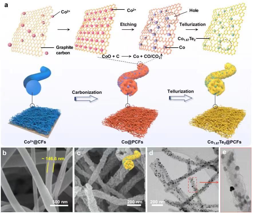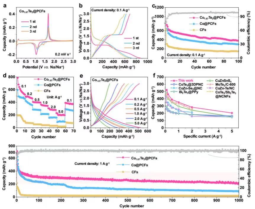我校材料科學(xué)與工程學(xué)院(文物保護(hù)科學(xué)與技術(shù)學(xué)院)楊艷玲教授在國(guó)際知名學(xué)術(shù)期刊《Energy Storage Materials》(IF:18.9)上發(fā)表題為“Spatial confinement of Co1.67Te2 nanoparticles within porous carbon nanofibers enabling fast kinetics and stability for sodium dual-ion batteries”的高水平研究型論文。我校楊艷玲教授、昆士蘭科技大學(xué)陳志剛教授為論文共同通訊作者,陜西科技大學(xué)為第一通訊單位。該論文的發(fā)表提高了我校在能源存儲(chǔ)和轉(zhuǎn)換材料領(lǐng)域的國(guó)際影響力。