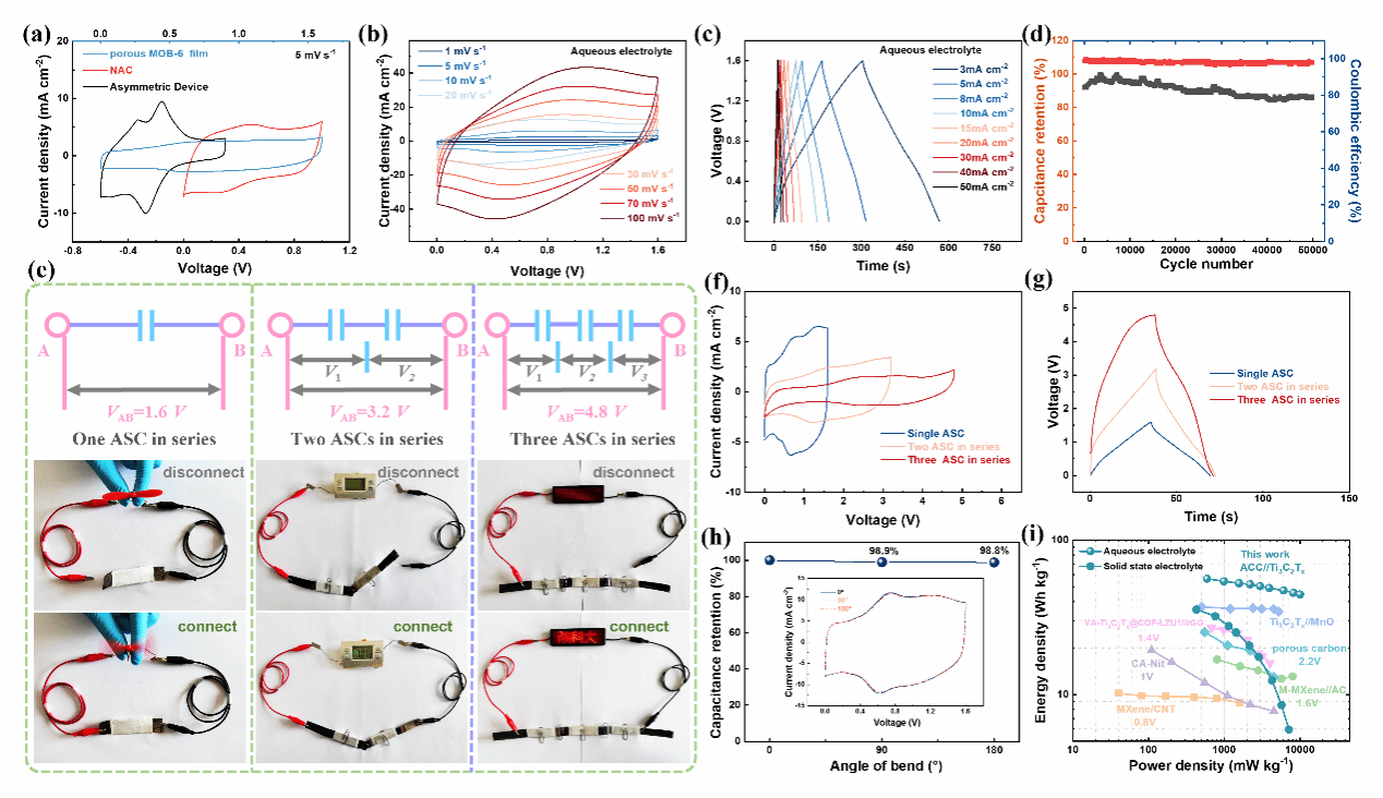 非對稱超級電容器電化學(xué)性能及應(yīng)用示意圖