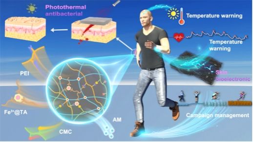 8. 團(tuán)隊(duì)王學(xué)川教授、黨旭崗副教授報(bào)道了一種羧甲基纖維素和單寧酸/鐵離子絡(luò)合物(TA@Fe3+)組成的具有快速自組裝和可調(diào)交聯(lián)時(shí)間的堅(jiān)固、粘接、自修復(fù)、可注射、抗菌、近紅外(NIR)光熱響應(yīng)、生物相容性和導(dǎo)電的水凝膠(CPPFe@TA),在生理信號(hào)監(jiān)測(cè)和康復(fù)運(yùn)動(dòng)管理等皮膚生物電子學(xué)領(lǐng)域具有廣闊的應(yīng)用前景。相關(guān)工作被發(fā)表在國際材料領(lǐng)域的頂級(jí)期刊Advanced Functional Materials, 2024, 2405745。
