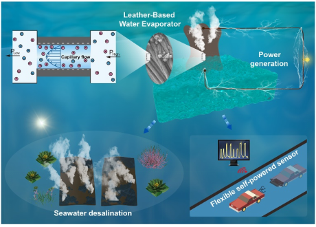9. 團(tuán)隊(duì)官小玉副教授等人受金屬離子先充分滲透然后與水凝膠的功能基團(tuán)有效結(jié)合的皮革礦物鞣制機(jī)理啟發(fā),成功構(gòu)建了一系列金屬離子配位水凝膠,與傳統(tǒng)的制備方法相比,其力學(xué)性能有顯著提高,強(qiáng)韌性金屬離子配位水凝膠在柔性電子地板、關(guān)節(jié)運(yùn)動(dòng)、扁平足矯正等領(lǐng)域具有潛在的應(yīng)用前景。相關(guān)研究成果發(fā)表在Advanced Functional Materials, 2024, 2313633,Chemical Engineering Journal, 2024, 489, 151353,ACS Applied Materials & Interfaces, 2024, 16, 5168期刊上。此外,官小玉副教授等人還通過傳統(tǒng)的鞣制工藝,成功構(gòu)建了具有眾多納米/微通道、豐富的含氧官能團(tuán)、優(yōu)異的物理化學(xué)穩(wěn)定性、柔韌性和生物相容性的天然皮革基蒸發(fā)器,有望從水蒸發(fā)中獲取可持續(xù)的綠色能源,在發(fā)電、海水淡化和柔性自供電傳感地板等領(lǐng)域具有廣泛的應(yīng)用前景。相關(guān)研究成果發(fā)表在Journal of Energy Chemistry, 2024, 96, 129。
