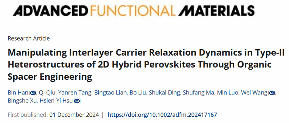 [1] B. Han*, Q. Qiu, Y. Tang, B. Lian, B. Liu, S. Ding, S. Ma, M. Luo, W. Wang, B. Xu, and H. –Y. Hsu,Advanced Functional Materials, 2024, 2417167.
