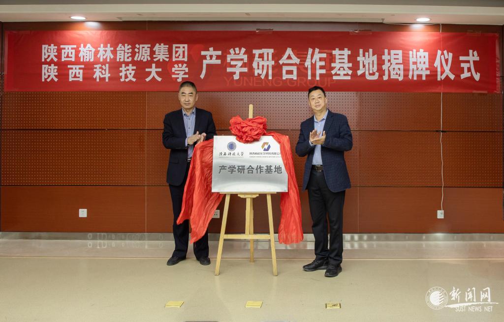 黃劍鋒與陜西榆能化學(xué)材料有限公司副董事長張光瑞為產(chǎn)學(xué)研合作基地揭牌