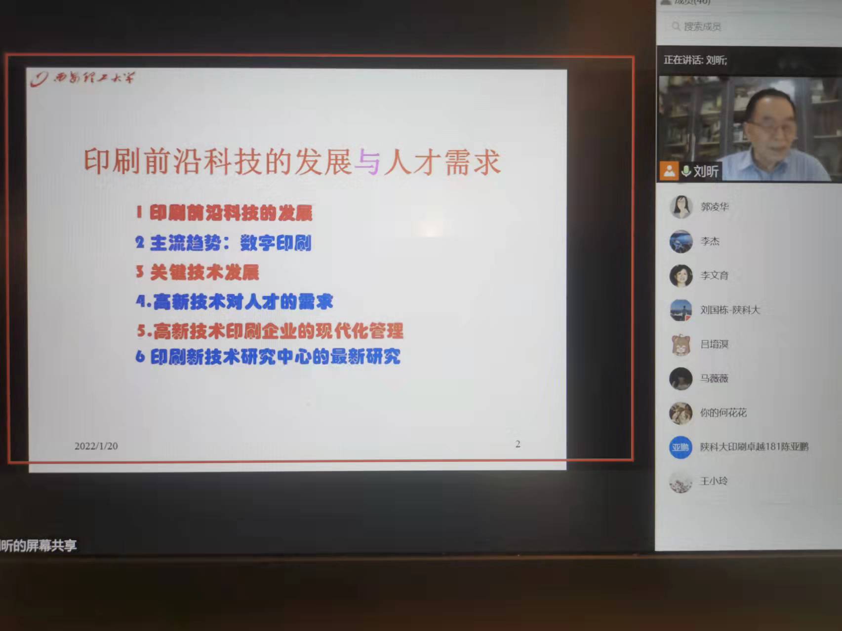 1月20日下午,應(yīng)輕工科學(xué)與工程學(xué)院和研究生院邀請,西安理工大學(xué)印刷包裝與數(shù)字媒體學(xué)院劉昕教授做客我校“未央導(dǎo)師論壇”,并作了題為“印刷前沿科技的發(fā)展與人才需求”的學(xué)術(shù)報(bào)告。報(bào)告會由輕工學(xué)院副院長劉國棟教授主持,學(xué)院相關(guān)專業(yè)教師、研究生和本科生聆聽了本次報(bào)告。因受疫情影響,本次報(bào)告采取線上會議方式進(jìn)行。