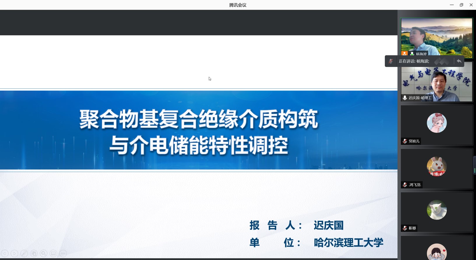 1月20日上午,應我校材料科學與工程學院邀請,哈爾濱理工大學遲慶國教授做客我校前沿科學報告,作了題為“聚合物基復合絕緣介質構筑與介電儲能特性調控”的學術報告,報告由教務處處長楊海波教授主持,材料學院教師和相關方向研究生參加了本次報告會。
