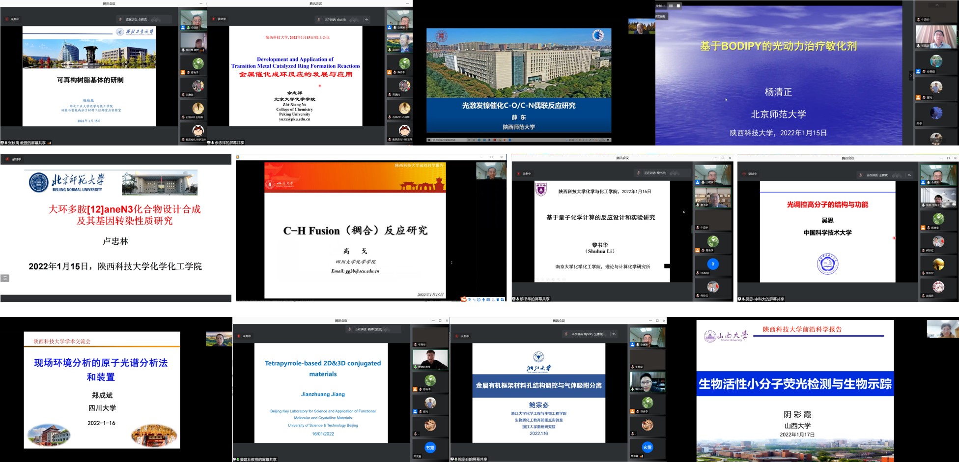 1月13日-1月19日,應我校化學與化工學院、科技處、前沿院邀請,清華大學李艷梅教授、北京大學余志祥教授、南京大學黎書華教授、南京大學謝代前教授、中國科技大學吳思教授、浙江大學鮑宗必教授、北京科技大學姜建壯教授、西北工業(yè)大學張秋禹教授、西安交通大學魏進家教授、西安交通大學張早校教授、西安交通大學何熾教授、西安交通大學楊伯倫教授、四川大學鄭成斌教授、四川大學高戈教授、蘭州大學房建國教授、北京師范大學盧忠林教授、北京師范大學楊清正教授、北京理工大學謝海燕教授、南京理工大學鐘秦教授、陜西師范大學薛東教授、江蘇大學施偉東教授、天津工業(yè)大學魏俊富教授、西安石油大學屈撐囤教授、山西大學陰彩霞教授等24位專家做客我?!扒把乜茖W報告”,為學院師生作了線上系列學術報告。報告會由化工學院副院長仝建波教授主持。
