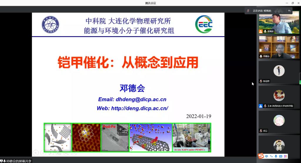 1月19日上午,應(yīng)我??萍继帯⑶把卦汉筒牧峡茖W(xué)與工程學(xué)院邀請,大連化物所鄧德會研究員做客我?!扒把乜茖W(xué)報告”,作了題為“鎧甲催化:從概念到應(yīng)用”的線上學(xué)術(shù)報告。報告由教務(wù)處處長楊海波教授主持,材料學(xué)院部分師生參加了此次學(xué)術(shù)報告會。