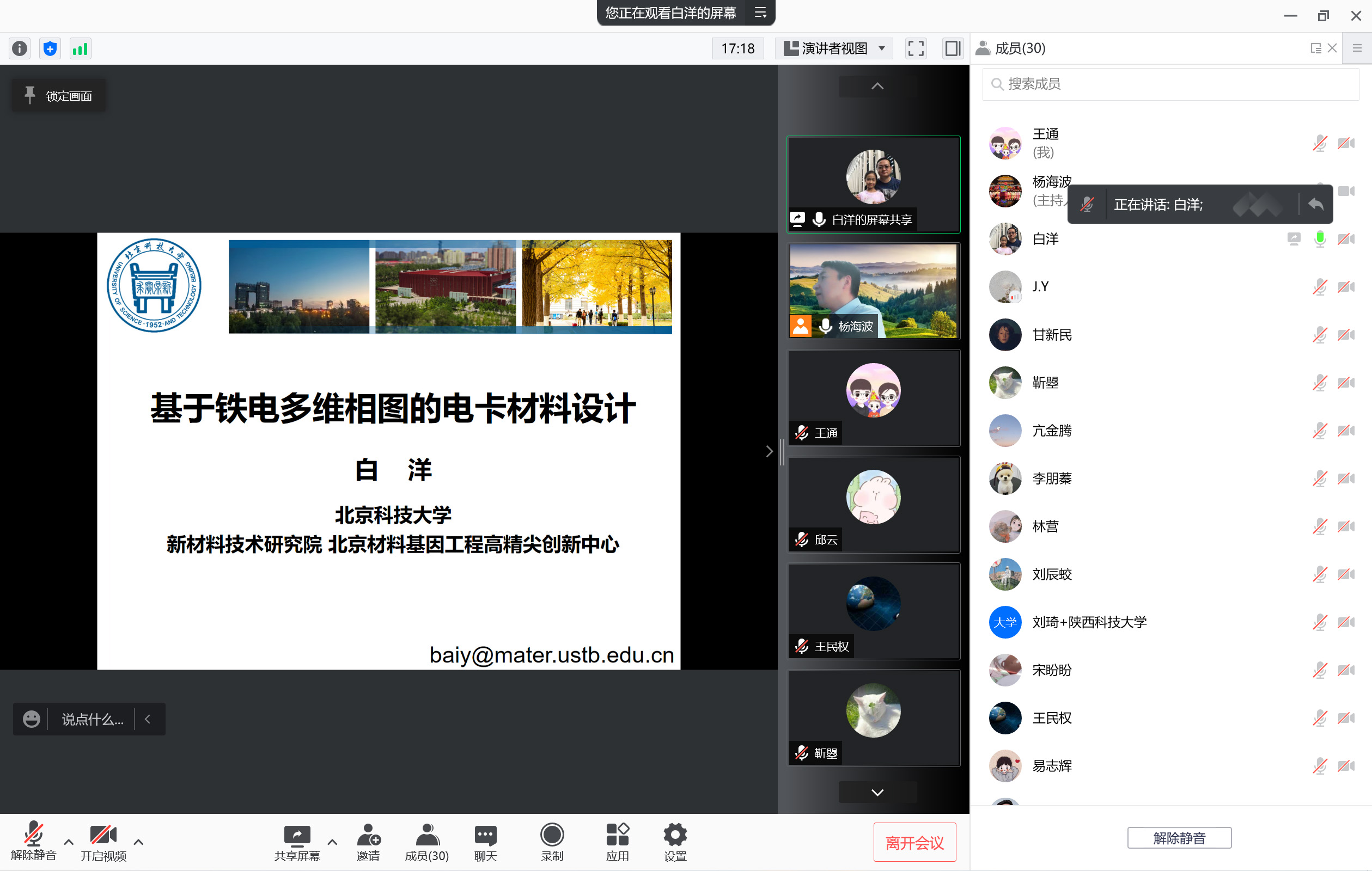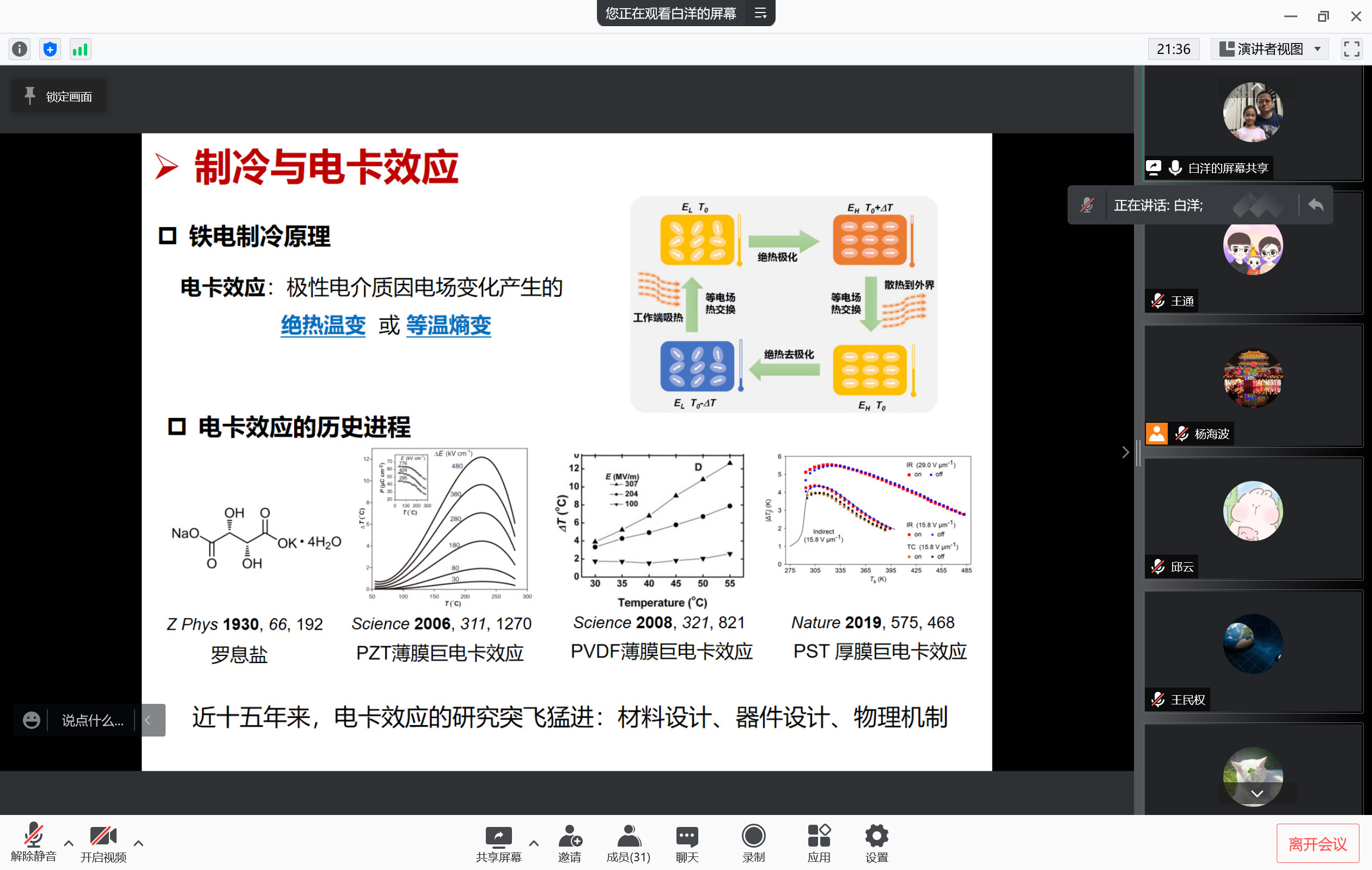 1月18日上午,應(yīng)我校材料科學(xué)與工程學(xué)院邀請(qǐng),北京科技大學(xué)白洋教授做客我校前沿科學(xué)報(bào)告,作了題為“基于多維鐵電相圖的電卡材料設(shè)計(jì)”的線上學(xué)術(shù)報(bào)告。材料學(xué)院相關(guān)專業(yè)師生參加了此次報(bào)告會(huì),報(bào)告由教務(wù)處處長(zhǎng)楊海波教授主持。