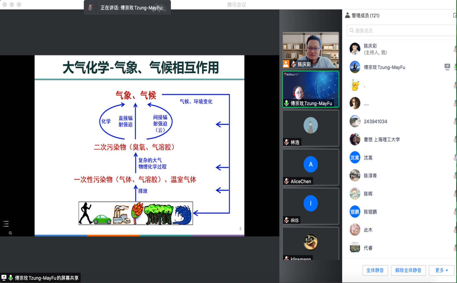 12月21日,受環(huán)境科學(xué)與工程學(xué)院邀請,南方科技大學(xué)傅宗玫教授、天津大學(xué)陳玖斌教授做客我校“前沿科學(xué)報(bào)告”,并分別以“大氣有機(jī)氣溶膠關(guān)鍵組分的來源、演化及環(huán)境效應(yīng)”“大金屬穩(wěn)定同位素在環(huán)境健康領(lǐng)域的潛在應(yīng)用”為題作了精彩的學(xué)術(shù)報(bào)告,環(huán)境學(xué)院及其他兄弟院校、科研院所師生200多人在線參加了會議。環(huán)境學(xué)院陳慶彩教授主持會議。