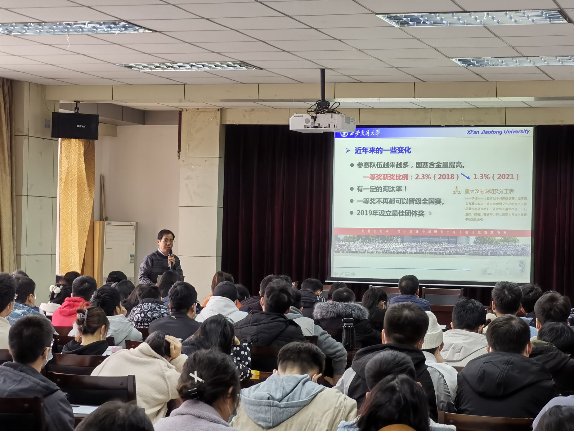 為切實(shí)提升我校研究生創(chuàng)新實(shí)踐能力,活躍科研氛圍,12月15日,應(yīng)機(jī)電學(xué)院邀請(qǐng),全國研究生電子設(shè)計(jì)競賽(研電賽)評(píng)審專家——西安交通大學(xué)吳勝利教授做客我?!拔囱雽?dǎo)師論壇”,并作了題為“中國研究生電子設(shè)計(jì)競賽分析”的報(bào)告。報(bào)告會(huì)由機(jī)電學(xué)院副院長楊立軍主持,機(jī)電學(xué)院部分教師、研究生參加了報(bào)告會(huì)。