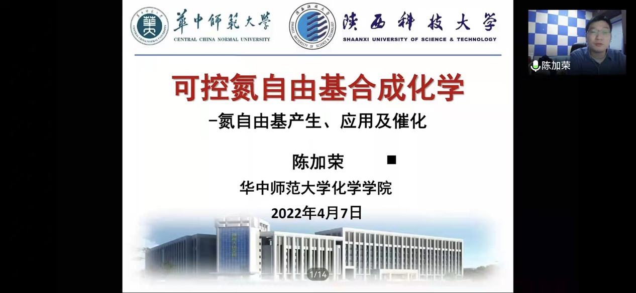 4月7日,應(yīng)食品與生物工程學(xué)院邀請,華中師范大學(xué)陳加榮教授做客我校前沿科學(xué)報告,作了題為“可控氮自由基”的學(xué)術(shù)報告。食品學(xué)院教師和研究生參加了本次報告,報告會由食品學(xué)院副院長李國梁教授(主持工作)主持。