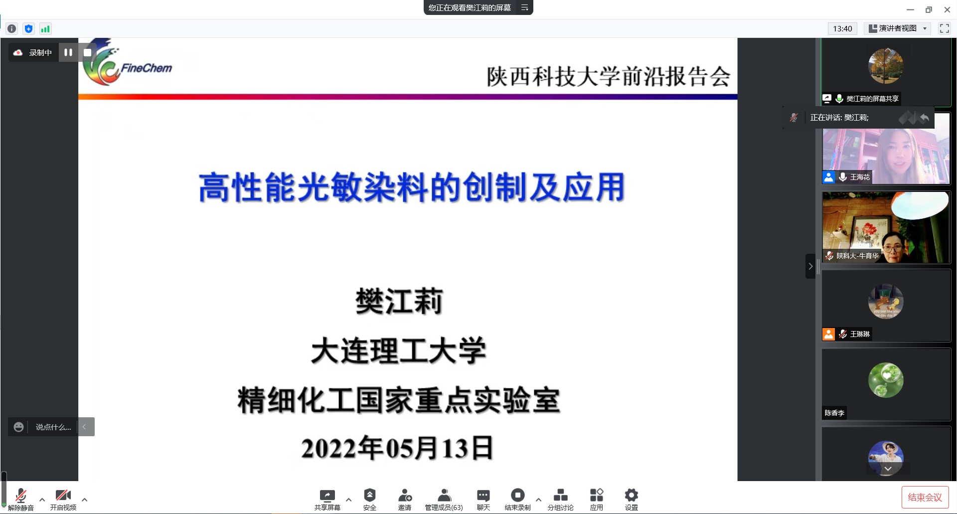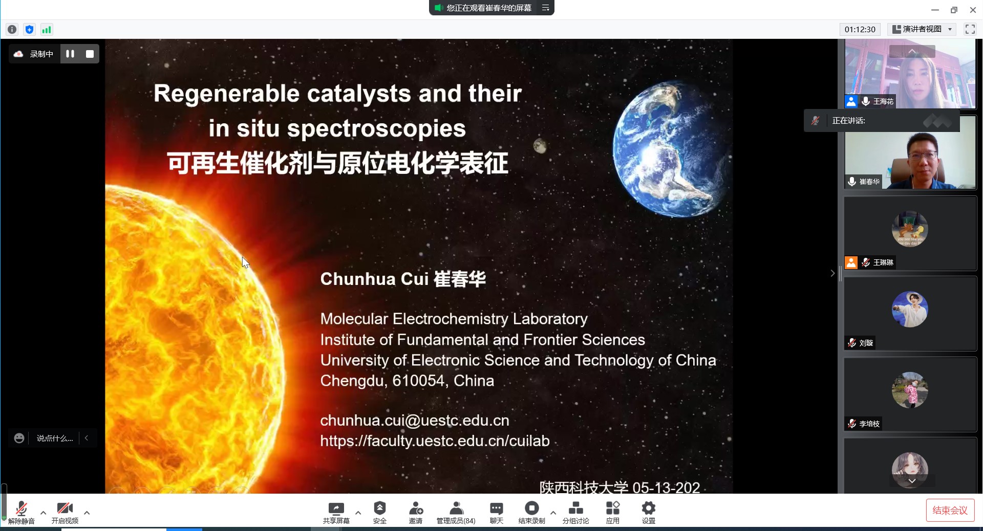 5月13日,應(yīng)我??萍继?、前沿院及化學(xué)與化工學(xué)院邀請,大連理工大學(xué)樊江莉教授和電子科技大學(xué)崔春華教授做客我?!扒把乜茖W(xué)報(bào)告”,作了題為“高性能光敏材料的創(chuàng)制及應(yīng)用”和“可再生催化劑與原位電化學(xué)表征”的報(bào)告。報(bào)告會由化學(xué)與化工學(xué)院王?;ń淌谥鞒?,學(xué)院相關(guān)專業(yè)教師、研究生聆聽了此次報(bào)告會。