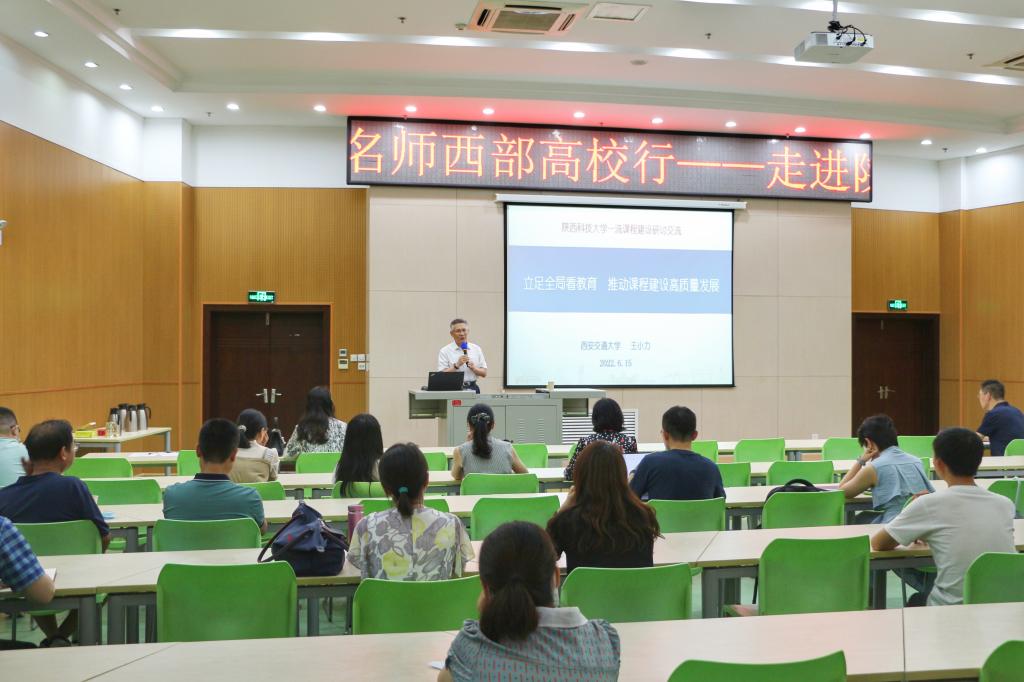 6月15日下午,由西北地區(qū)高等學(xué)校教師教學(xué)發(fā)展中心聯(lián)盟主辦,我校教師發(fā)展中心及教務(wù)處承辦的“名師西部高校行——走進(jìn)陜西科技大學(xué)”報(bào)告會(huì)在我校舉行。特邀國(guó)家級(jí)教學(xué)名師、西安交通大學(xué)王小力教授做了題為《立足全局看教育,推動(dòng)課程建設(shè)高質(zhì)量發(fā)展》的主題報(bào)告。教師發(fā)展中心常務(wù)副主任徐永建主持了本次活動(dòng),西北教師發(fā)展聯(lián)盟執(zhí)行秘書長(zhǎng)吉康敏及我校教務(wù)處負(fù)責(zé)人參加活動(dòng)。