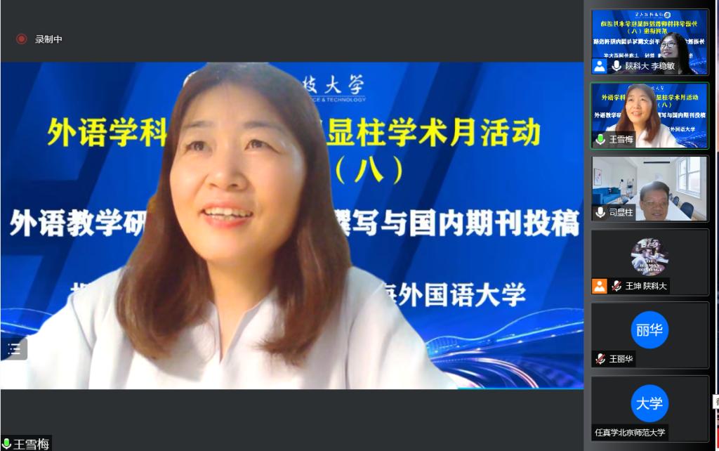 6月29日,上海外國語大學(xué)王雪梅教授做客我校“前沿科學(xué)報告”,做了題為“外語教學(xué)研究高水平論文撰寫與國內(nèi)期刊投稿”的線上報告。報告由我校外語學(xué)科特聘教授司顯柱主持,參會人數(shù)達(dá)300人。文理學(xué)院6月組織開展的外語學(xué)科特聘教授司顯柱學(xué)術(shù)活動系列講座,旨在充分發(fā)揮我校特聘教授的學(xué)術(shù)引領(lǐng)和資源共享作用,推動我校外語學(xué)科內(nèi)涵發(fā)展。