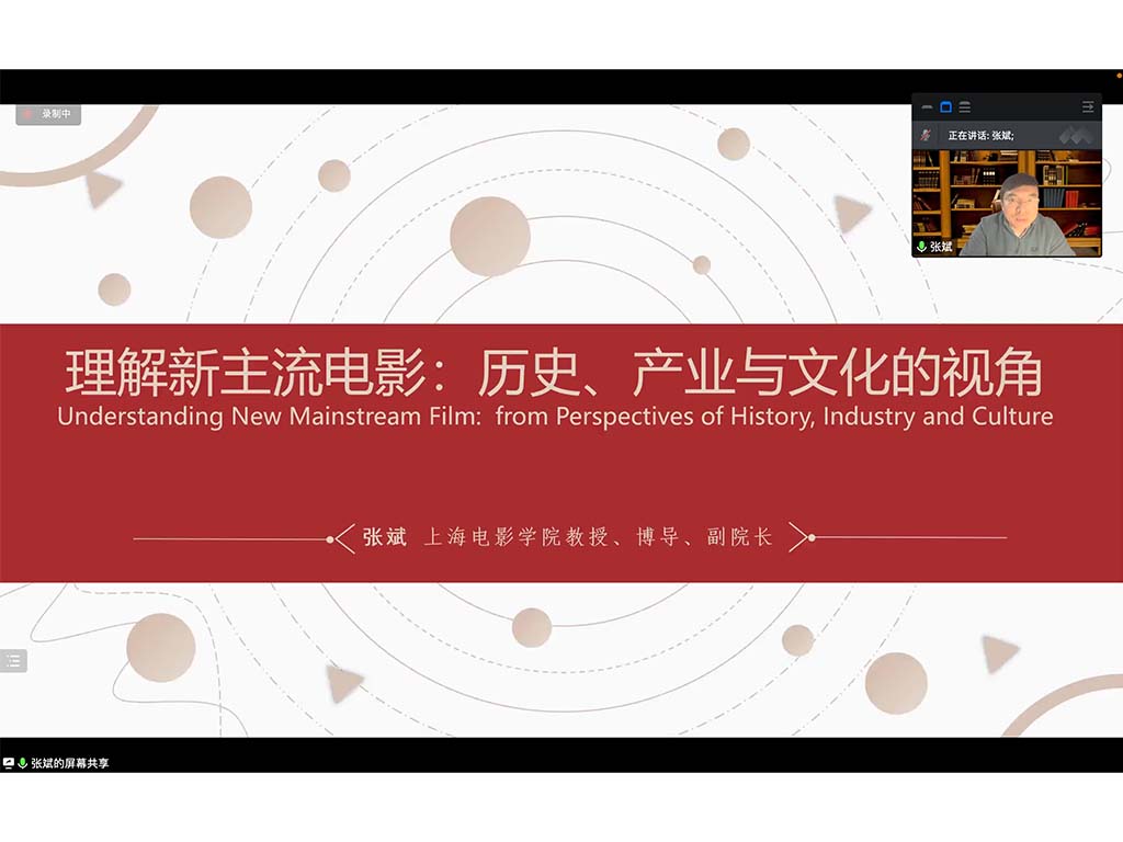 11月12日晚,應(yīng)我校設(shè)計與藝術(shù)學(xué)院(絲路文化與傳播學(xué)院)、科技處及前沿院邀請,上海大學(xué)張斌教授做客我?!扒把乜茖W(xué)報告”,作了題為“理解新主流電影:歷史、產(chǎn)業(yè)與文化的視角”的線上學(xué)術(shù)報告。報告會由設(shè)藝學(xué)院院長助理、絲路電影與絲路文化研究基地主任吉平教授主持,設(shè)藝學(xué)院院長劉宗明教授、副院長賀雪梅教授及設(shè)藝學(xué)院相關(guān)專業(yè)師生共300余人參加報告會。