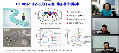 報(bào)告會(huì)上,王義平教授從其所在課題組利用飛秒激光、紫外激光、CO2激光、3D打印、電弧放電等技術(shù)制備豐富多彩的新型光纖微結(jié)構(gòu)器件開始,揭示了各種新型光纖微結(jié)構(gòu)器件的物理傳感機(jī)理和其在極端環(huán)境、航空航天、人工智能、生命健康等領(lǐng)域的應(yīng)用。特別是從面向國家重大科技需要、社會(huì)服務(wù)和人民生命健康方面,展示了其課題組10年來在超高溫、超高壓等極端環(huán)境下利用藍(lán)寶石光纖光柵實(shí)現(xiàn)航空發(fā)動(dòng)機(jī)、高速飛行器、核電站檢測(cè)等智能工程結(jié)構(gòu)多物理場(chǎng)實(shí)時(shí)健康監(jiān)測(cè)方面的重要成果。