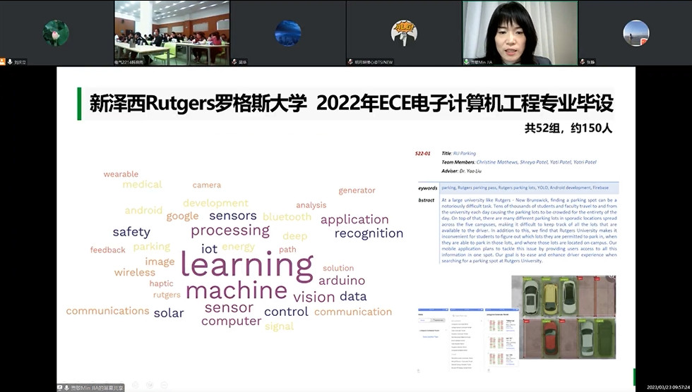 作為機(jī)器人工程專業(yè)特聘企業(yè)導(dǎo)師,兩位企業(yè)導(dǎo)師分別從機(jī)器人教育、創(chuàng)新創(chuàng)業(yè)兩個(gè)維度進(jìn)行了分享。賈敏面向未來智慧工廠與智慧城市的新特點(diǎn)和新需求,結(jié)合桌面機(jī)器人和相關(guān)AI技術(shù)在美國相關(guān)大學(xué)的研究成果,通過大量數(shù)據(jù),系統(tǒng)闡述了機(jī)器人創(chuàng)新設(shè)計(jì)、數(shù)字孿生、機(jī)器視覺、物聯(lián)網(wǎng)等專業(yè)課程設(shè)計(jì)與教學(xué)實(shí)踐,并展望了未來新工科發(fā)展前景。高鵬在線下為同學(xué)們做了創(chuàng)新創(chuàng)業(yè)方面的講座,從個(gè)人的成長經(jīng)歷出發(fā),介紹了開塔機(jī)器人研發(fā)與市場開發(fā)的歷程,鼓勵(lì)同學(xué)們提升遠(yuǎn)見力、創(chuàng)新力、執(zhí)行力、學(xué)習(xí)力和共情力。兩場報(bào)告持續(xù)了三個(gè)小時(shí),拓展了學(xué)生的國際視野,激發(fā)了學(xué)生創(chuàng)新創(chuàng)業(yè)的激情。