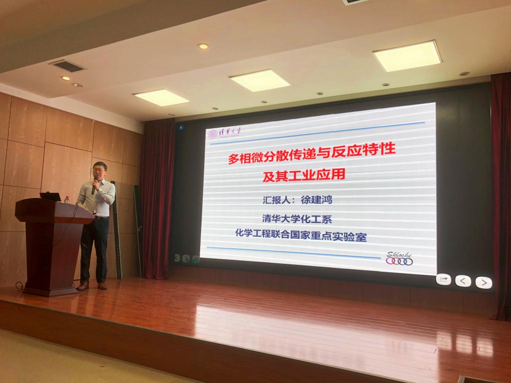 徐建鴻教授從微化工的定義與應用領域引入,系統(tǒng)介紹了課題組圍繞多相微分散體系的傳遞與反應過程開展的工作,包括對微分散體系的傳質(zhì)特性及強化機制的研究、多通道微結構設備的開發(fā)以及精細化學品高效合成等。報告最后,徐建鴻教授還分享了自己團隊的發(fā)展歷程及對微化工應用領域未來發(fā)展趨勢的思考。