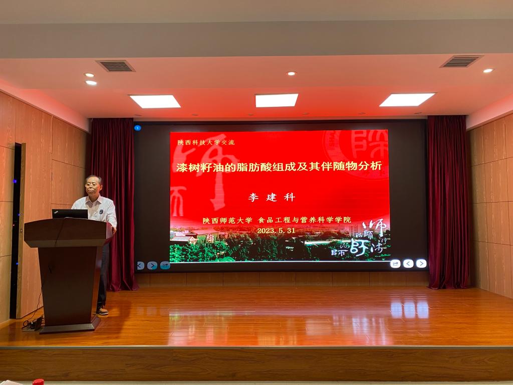 5月31日下午,應我校輕工科學與工程學院(柔性電子學院)、科技處及前沿院的邀請,陜西師范大學李建科教授做客我?!扒把乜茖W報告”,作了題為“漆樹籽油的脂肪酸組成及其伴隨物分析”的學術報告。報告由輕工學院院長呂斌主持,我校相關專業(yè)教師、研究生參加了此次報告會。