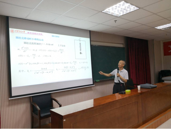 6月20日下午,應(yīng)數(shù)學(xué)與數(shù)據(jù)科學(xué)學(xué)院的邀請,全國大學(xué)生數(shù)學(xué)建模組委會委員及論文評閱專家、西安交通大學(xué)數(shù)學(xué)與統(tǒng)計學(xué)院教授、博士生導(dǎo)師周義倉在理科樓441報告廳為我校參加數(shù)學(xué)建模競賽的師生作了一場題為《圓柱殼內(nèi)彈簧振子運(yùn)動模型及應(yīng)用》的報告。我校數(shù)學(xué)建模教練組教師及全校數(shù)學(xué)建模競賽參賽同學(xué)參加此次報告。報告會由數(shù)學(xué)學(xué)院院長李劍主持。