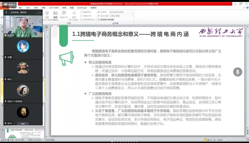 7月6日,受科技處、經(jīng)濟(jì)與管理學(xué)院邀請,西安理工大學(xué)經(jīng)濟(jì)管理學(xué)院薛偉賢教授、商務(wù)部國際貿(mào)易經(jīng)濟(jì)合作研究院“一帶一路”經(jīng)貿(mào)合作研究所所長祁欣研究員做客我?!扒把乜茖W(xué)報(bào)告”,分別為我校師生帶來主題為“跨境電商發(fā)展?fàn)顩r及展望的報(bào)告”“共建“一帶一路”經(jīng)貿(mào)合作與跨境電商合作”的學(xué)術(shù)報(bào)告。兩場報(bào)告通過網(wǎng)絡(luò)會議的形式舉行,報(bào)告由經(jīng)管學(xué)院副院長薛儉主持,經(jīng)管學(xué)院教師、研究生參加此次報(bào)告會。