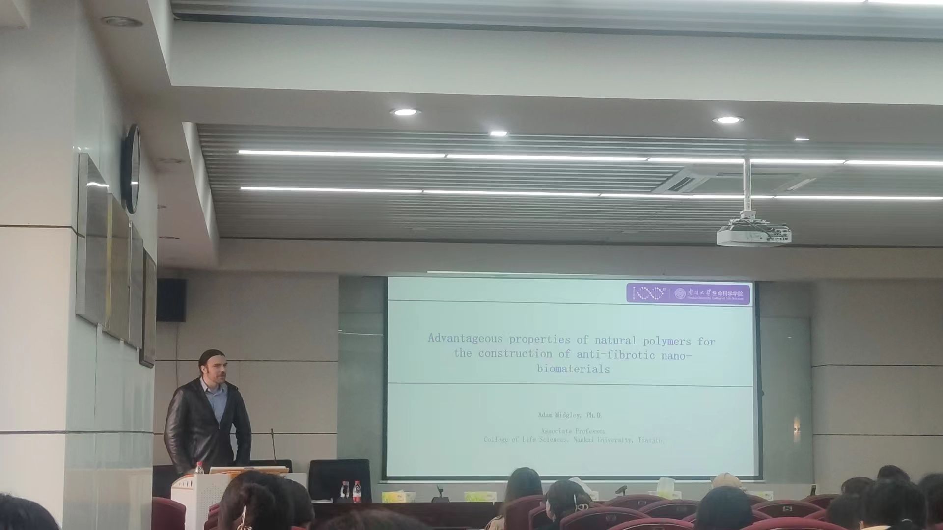 12月8日下午,應(yīng)我??萍继幒褪称房茖W(xué)與工程學(xué)院(生物與醫(yī)藥學(xué)院)邀請(qǐng),南開大學(xué)Adam C. Midgley副教授做客我?!扒把乜茖W(xué)報(bào)告”,作了題為“Advantageous properties of natural polymers for the construction of antifibrotic nano-biomaterials”的報(bào)告。食品學(xué)院部分教師和研究生代表參加本次報(bào)告會(huì),報(bào)告會(huì)由食品學(xué)院學(xué)術(shù)委員會(huì)主任姚曉琳教授主持。